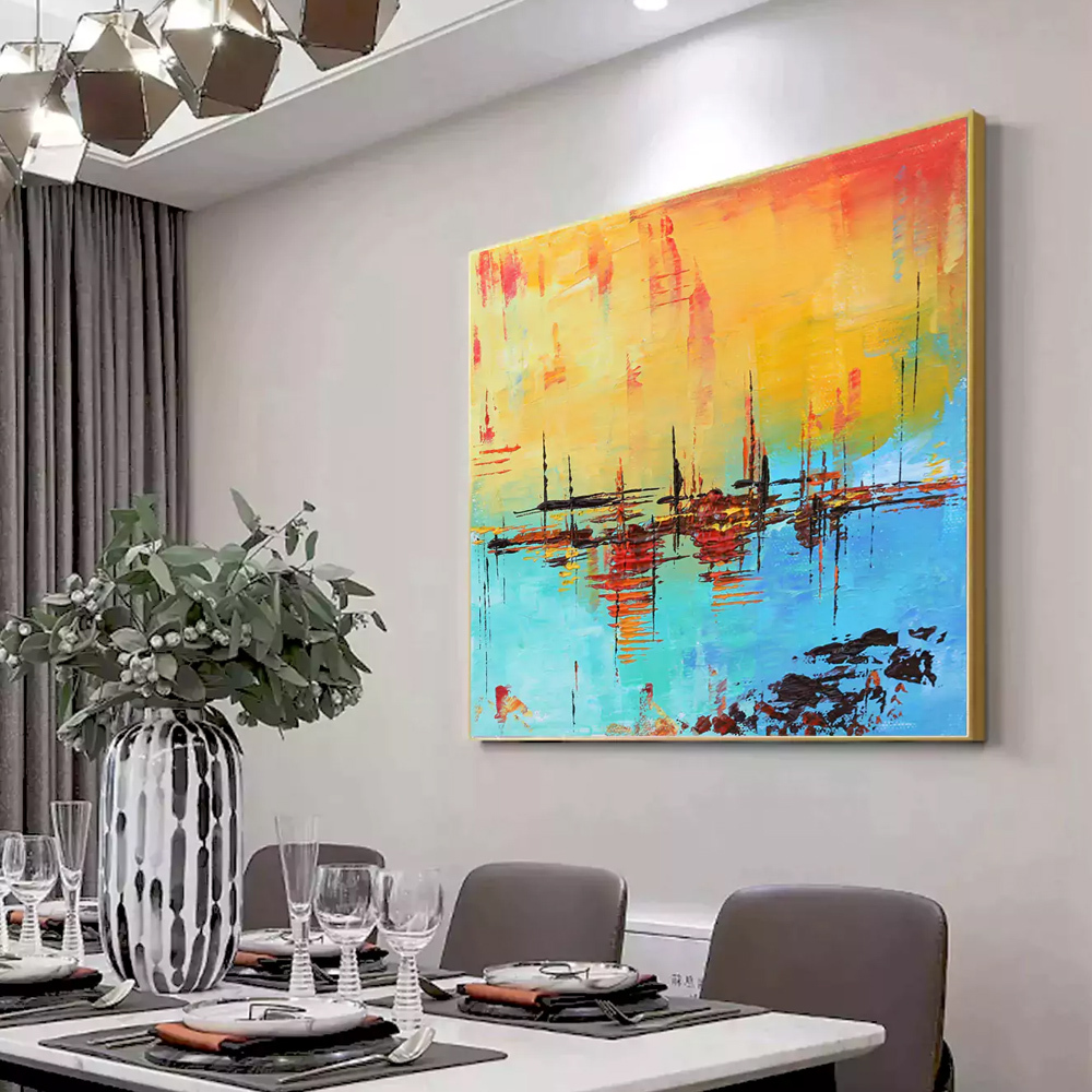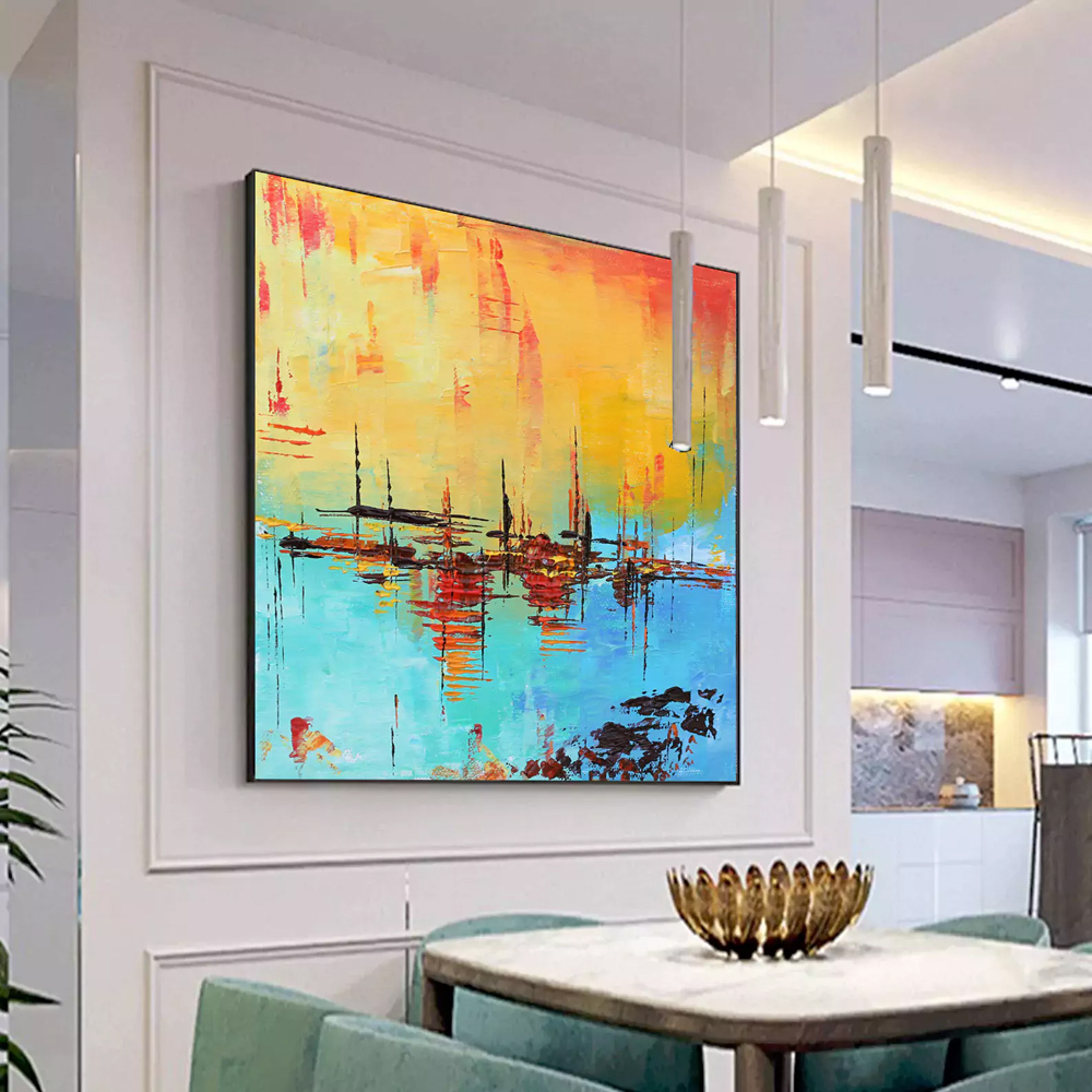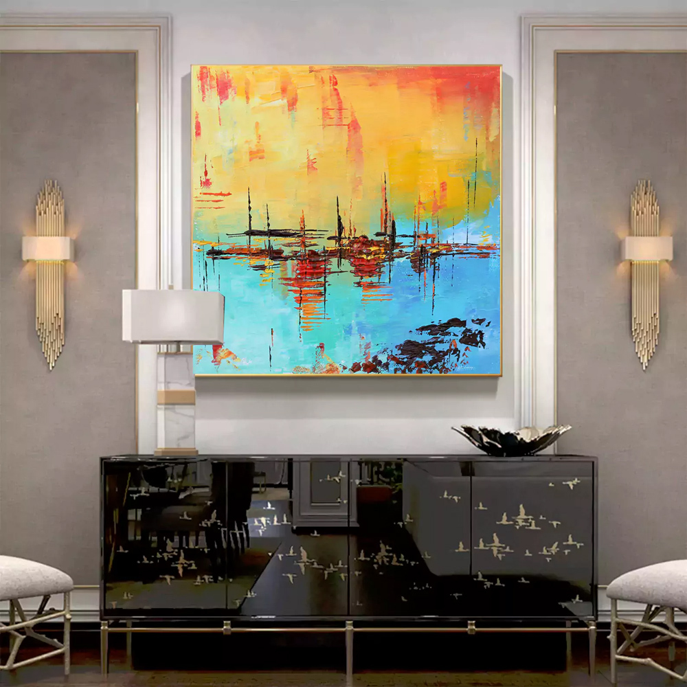 Abstract Sailboat Seascape Painting with palette knife,Acrylic painting tutorial step by step.